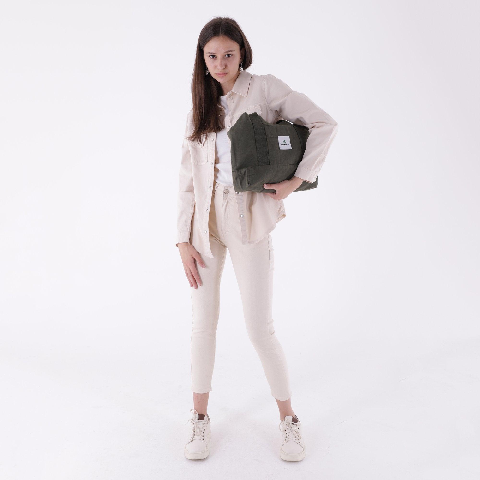 Berymood'un haki renkli askılı çantası, kadınların gardıroplarında vazgeçilmez bir parça haline gelmeye adaydır. Hem günlük kullanıma uygunluğu hem de şık tasarımıyla dikkat çeker. Bu çanta, tarzınızı tamamlayacak ve her zaman şık görünmenizi sağlayacak mükemmel bir seçenektir. Ayrıca, eşyalarınızı güvenle taşımanızı sağlayan mıknatıs kapamalı tasarımı ve pratik cepleriyle öne çıkar.